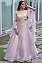 Featuring a lilac lehenga in organza base. It is paired with a georgette blouse having tassels hand embroidery and a ruffled dupatta. Style it with statement jewellery and heels for a sangeet or a wedding ceremony.