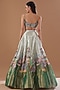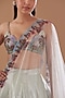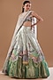 Featuring an ivory and green lehenga in tissue base with applique and embellishments. It is paired with a matching blouse and a dupatta.