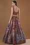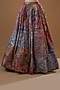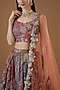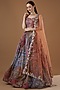 Featuring a multi-colored lehenga in indian organza base with print and embellishments. It is paired with a matching blouse and a scalloped net dupatta.