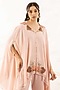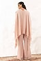 Featuring a rose pink layered cape in georgette and mulmul base with applique embroidery. It is paired with flared pants. Accentuate it with stud earrings and heels for a festive ready-look.