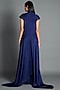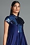 Featuring an ink blue draped dress in crinkled chiffon base with handwoven metallic work.