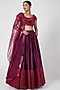 Featuring a plum lehenga in silk chanderi, organza, and mesh base. It is paired with a matching hand woven blouse and a dupatta.