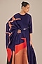 Featuring a deep purple tunic in silk base. It is paired with pants, a dupatta and a belt. Accentuate with stud earrings and juttis for festive gatherings.