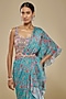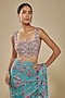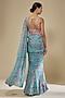Featuring a blue saree in chinon base. It is paired with a blouse and a belt. Accentuate with statement earrings and heels for festive occasions or wedding ceremony.