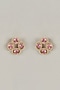 Featuring a pair of 22kt gold plated stud earrings studded with rose swarovski crystals and american diamonds, set in brass. Perfect wear for festive occasions or wedding ceremonies.
