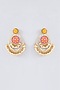 Matte Gold Finish Hot Pink Thread Embroidered Chandbali Earrings