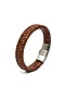Featuring a brown bracelet in leather base with a stainless steel clasp.