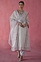 Featuring an ivory kurta in chanderi silk base with french knot and bead work, including resham detail and hand embroidery. It is paired with a cotton slip, cotton zari pants and an organza dupatta having boota hand embroidery. Accentuate it with statement jewellery and heels for festive ceremonies.