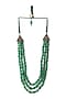Featuring an emerald green layered mala studded with glass beads, set in brass. Wear this precious adornment for a dash of personality and add a contemporary twist to your traditional wear.