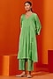 Featuring a green kurta in cotton silk satin base with gathered details. It is paired with embroidered palazzo pants and a scarf. Accessorise with dangler earrings and heels.