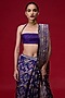 Featuring a purple banarasi handwoven saree in silk base with kadhwa technique. It is paired with an unstitched blouse. Accentuate it with statement jewellery and heels for a wedding or engagement ceremony.