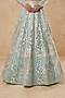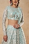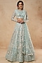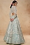 Featuring a sky blue lehenga in tulle base with gold foil and silk thread work. It is paired with a matching blouse and a dupatta having foil detailing.