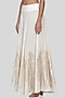 Featuring an off white brocade circular skirt in kora cotton base with gota embroidery. It has an asymmetric hem. This contains only one piece.