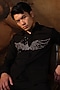 Featuring a black shirt in italian banana crepe base with glass beads and stone work. This versatile shirt is perfect for any occasion.