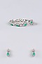 White Rhodium Finish Green Stone Stud Earrings With Bracelet