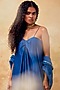 Featuring a blue slip dress in chanderi base with a sweetheart neck, back zipper, tie-up and gota detail. It is paired with a cotton kota doriya embellished dupatta. Accentuate with statement earrings and heels for a festive look.