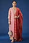 Featuring a pink kurta in silk chanderi base with gota and beads embroidery. It is paired with matching cotton pants and a rust cotton chanderi dupatta.