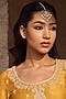 Featuring a gold finish handmade jadau maangtikka studded with kundan polki and pearls, set in copper. Perfect wear for festive occasions or wedding ceremonies.