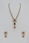 Gold Finish Multi-Colored Stone & Zircon Long Pendant Necklace Set