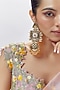 Featuring a pair of gold finish dangler earrings studded with ruby, moissanite polki and pearls, set in mixed metal. Whether you're wearing a gown or a modern saree, this necklace will add a touch of elegance to your look.