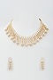 Featuring a gold finish choker necklace studded with zircons, set in mixed metal. It is paired with a matching pair of earrings.