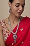 Featuring a gold finish long necklace studded with zircons and multi-colored stones, set in mixed metal. It is paired with a matching pair of earrings. Perfect choice for weddings and other Indian festivities.