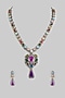 Gold Finish Zircon & Multi-Colored Stone Long Necklace Set