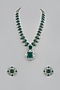 White Finish Emerald Green Zircon Long Pendant Necklace Set