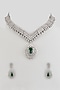 White Finish Zircon & Emerald Stone Long Necklace Set
