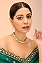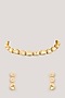 Featuring a gold finish necklace studded with moissanite polki, set in brass. It is paired with a matching pair of earrings. Perfect wear for festive occasions or wedding ceremonies.