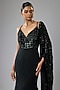 Featuring a black gown in net base with sequins and beads hand embroidery. It is paired with a georgette drape. Accentuate it with diamond stud earrings and a clutch, perfect for evening parties, receptions and formal celebrations.