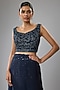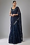 Featuring a blue lehenga saree in net base with sequins and beads embroidery. It is paired with a blouse, a georgette drape and an underskirt. Accentuate it with statement earrings and heels, perfect for weddings, sangeet and festive celebrations.