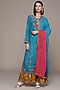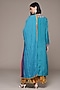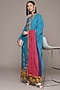Ritu Kumar presents a teal green kurta in viscose silk base with embroidery. It is paired with a matching cotton voile pants and a cotton gauze dupatta. It is crafted with the finest materials and will accentuate your festive look.