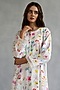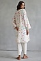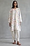 Featuring an ivory kurta in linen base with beaded buttons, floral motifs and lace detailing. It is paired with tapered salwar pants. Accentuate it with statement jewellery and heels for festive ceremonies.