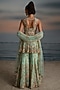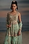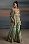 Featuring a light blue kurta in tulle base with resham, floral and pearl embellishments. It is paired with sharara pants and a dupatta. Accentuate with polki jewellery and heels for a sangeet or engagement look.