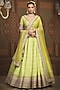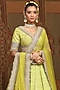 Featuring a lemon green lehenga in cotton shimmer chanderi base with gota, dori and badla work. It is paired with a silk chanderi blouse having a v-neckline and a net dupatta. Accentuate this designer lehenga set with statement jewellery and heels for a wedding or engagement ceremony.