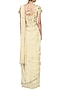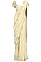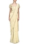 Featuring a champagne saree gown in georgette base with zardozi and pearl hand embroidery on the bodice.