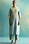 Featuring a sage green kurta in handwoven chanderi base with cutwork and floral hand embroidery. It is paired with matching cotton silk pants having cutwork embroidery, an inner, and a chanderi dupatta.