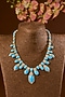 Featuring a gold finish necklace studded with turquoise stones and euro stars, set in 92.5 sterling silver. It is paired with a matching pair of earrings. Perfect wear for festive occasions or wedding ceremonies.