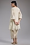 Featuring an ivory anarkali in crushed tissue base with hand embroidery. It is paired with pants and a net dupatta. Accentuate it with statement earrings, a sleek clutch, and embellished juttis for a graceful look, perfect for festive gatherings or intimate celebrations.