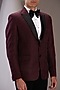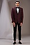 Featuring a wine tuxedo in jacquard base. It is paired with a contrasting pintuck shirt, black pants and a handwork bow tie. Perfect wear for a reception or engagement ceremony.