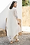Featuring a pearl white kurta in muslin cotton base with floral applique detail. It is paired with pants and a dupatta. Accentuate it with statement earrings, a sleek clutch, and embellished juttis for a graceful look, perfect for festive gatherings or intimate celebrations.
