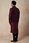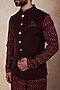 Featuring a wine nehru jacket in crepe base with shell buttons. Perfect for a festive occasion or pooja ceremony.