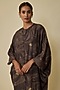 Featuring a black kaftan dress in fine silk base with screen print. Enhance your kaftan with statement earrings and heels, adding flair and sophistication to your daytime ensemble.