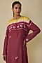 Featuring a multi-colored dress in fine silk base with bandhani artwork. Accentuate with statement jewellery and heels for evening soirees.