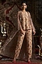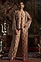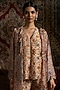 Featuring a beige top in liquid organza and raw silk base with print, hand work and a v-neck. It is paired with pants and a jacket. Accentuate it with statement jewellery and heels for festive occasions.