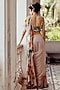 Featuring a beige ruffled saree in tabby silk base with print. It is paired with an embroidered chanderi bralette. Accentuate with statement jewellery and heels for a sangeet or engagement ceremony.