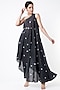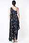Featuring a black one-shoulder bandhani kurta in tussar silk base with a rhombus neckline and an uneven hemline. It is paired with matching straight pants and a belt.