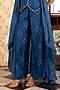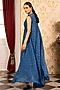 Featuring a blue cape in cotton silk base with geometric print. It is paired with a waistcoat and pants. Accentuate it with statement earrings and heels for a perfect festive ready-look.