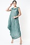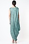 Featuring a coastal blue gown in tussar silk base with fumta neck detailing and a side cowl.